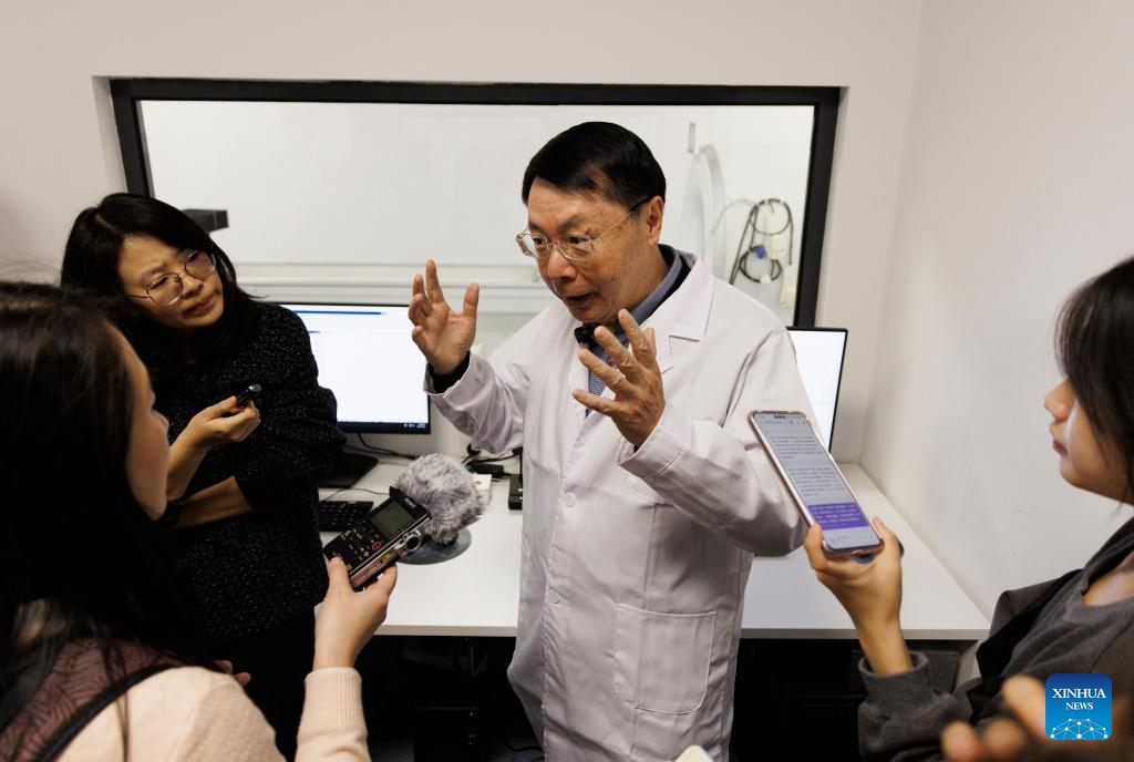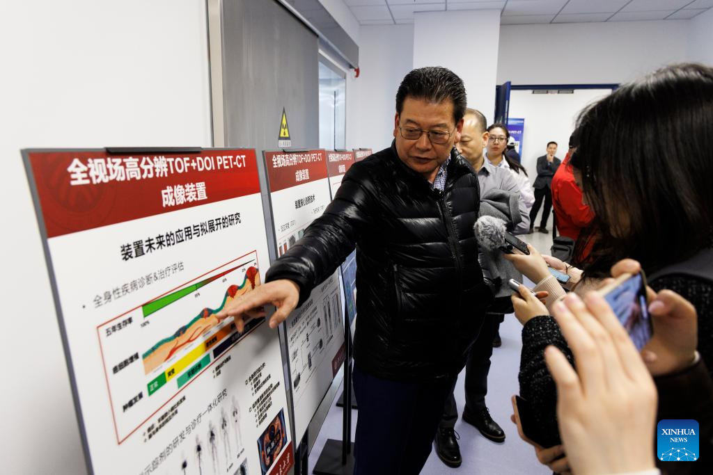 Gao Jiahong, director of Peking University's Magnetic Resonance Imaging (MRI) Research Center, introduces a multimodal medical imaging device in Beijing, capital of China, March 20, 2025. (Xinhua/Jin Liwang)