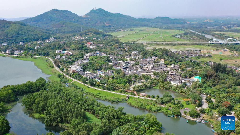 An aerial drone photo taken on March 20, 2025 shows a view of Shamei Village of Boao Town in Qionghai, south China's Hainan Province. Empowered by Boao Forum for Asia, Qionghai has built an exquisite array of rural clusters and embarked on a road to rural revitalization driven by tourism. (Xinhua/Guo Cheng)