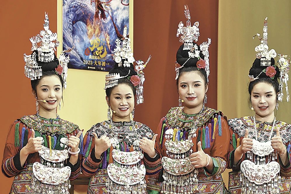 This enchanting sound came from Yang Xiangni, a Generation-Z lead vocalist of the Wuyue Chan'ge ensemble in southwest China's Guizhou province, and a group of young women from the Dong ethnic group. With the Grand Song of the Dong ethnic group, they provided audiences with a unique auditory experience.