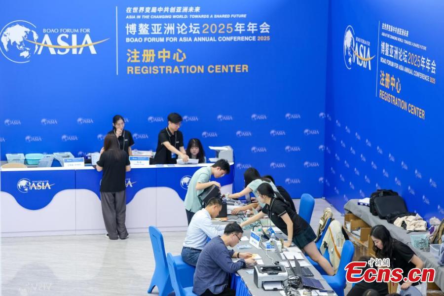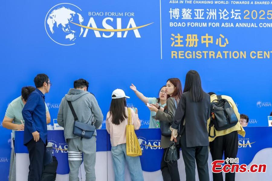 Participants register at the Registration Center for the 2025 Boao Forum in south China's Hainan Province, March 23, 2025. (China News Service/Luo Yunfei)