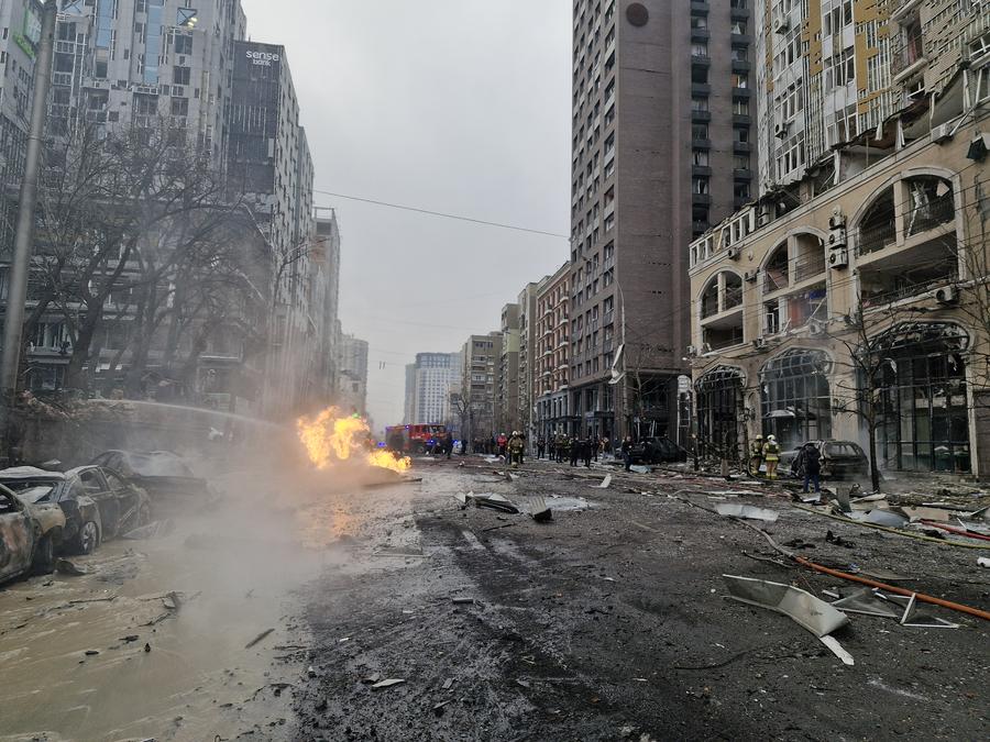 Fire emerges after a Russian missile and drone attack in Kiev, Ukraine, Dec. 20, 2024. (Photo by Roman Petushkov/Xinhua)