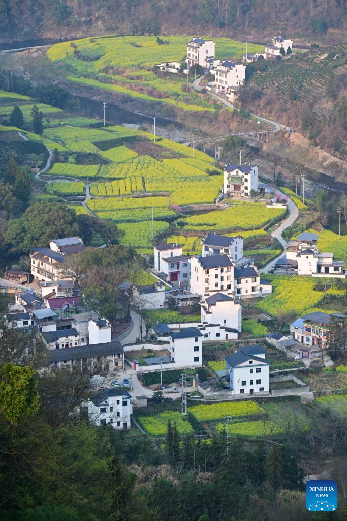 This photo taken on March 25, 2025 shows the spring scenery at Shitan Village in Shexian County, Huangshan City of east China's Anhui Province. (Xinhua/Zhou Mu)