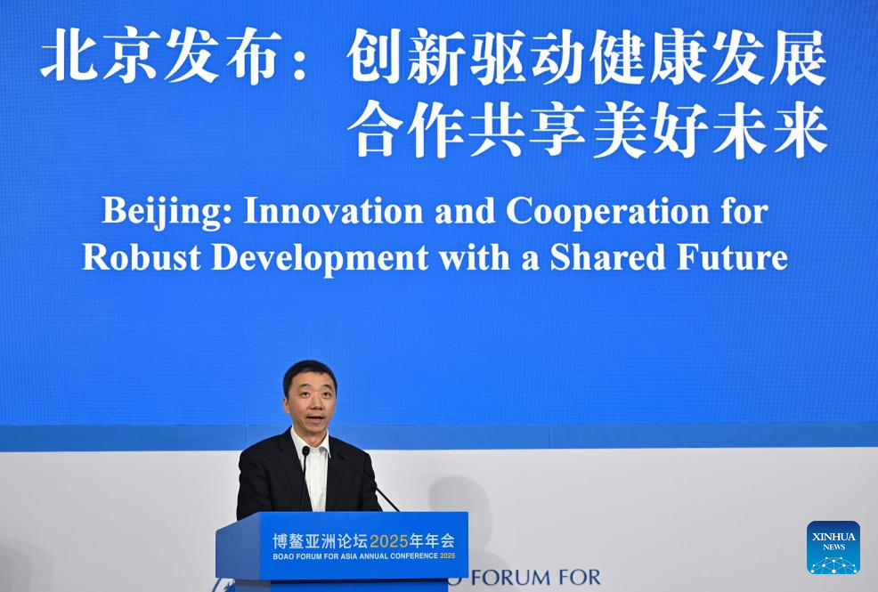 Liu Juncai, director general of Beijing Municipal Health Commission, speaks at a Release Moment titled "Beijing: Innovation and Cooperation For Robust Development with a Shared Future" during the Boao Forum for Asia (BFA) Annual Conference 2025 in Boao, south China's Hainan Province, March 26, 2025. (Xinhua/Guo Cheng)