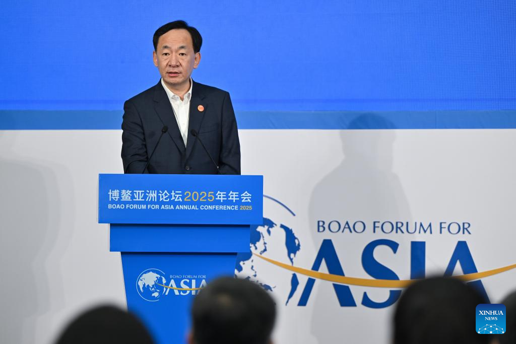 Zhang Jun, secretary general of Boao Forum for Asia, speaks at a Release Moment titled "Beijing: Innovation and Cooperation For Robust Development with a Shared Future" during the Boao Forum for Asia (BFA) Annual Conference 2025 in Boao, south China's Hainan Province, March 26, 2025. (Xinhua/Guo Cheng)