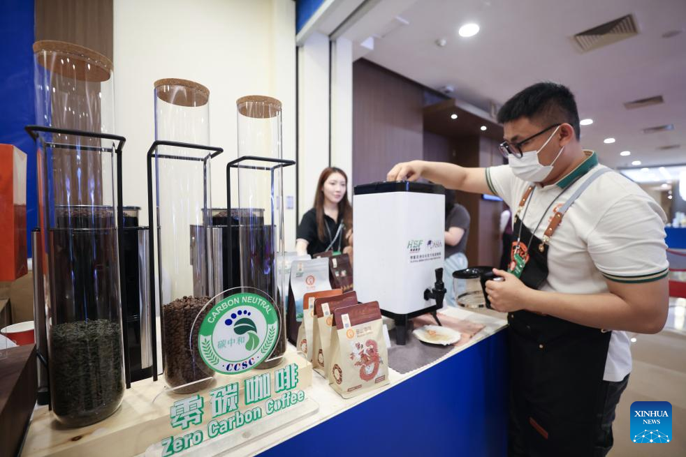 A staff member makes zero-carbon coffee during the Boao Forum for Asia (BFA) Annual Conference 2025 in Boao, south China's Hainan Province, March 27, 2025. Since its formal inauguration in 2001, the BFA has served as a key platform for the advancement of green development across Asia, facilitating the exchange of insights to promote sustainable growth in the region and beyond.