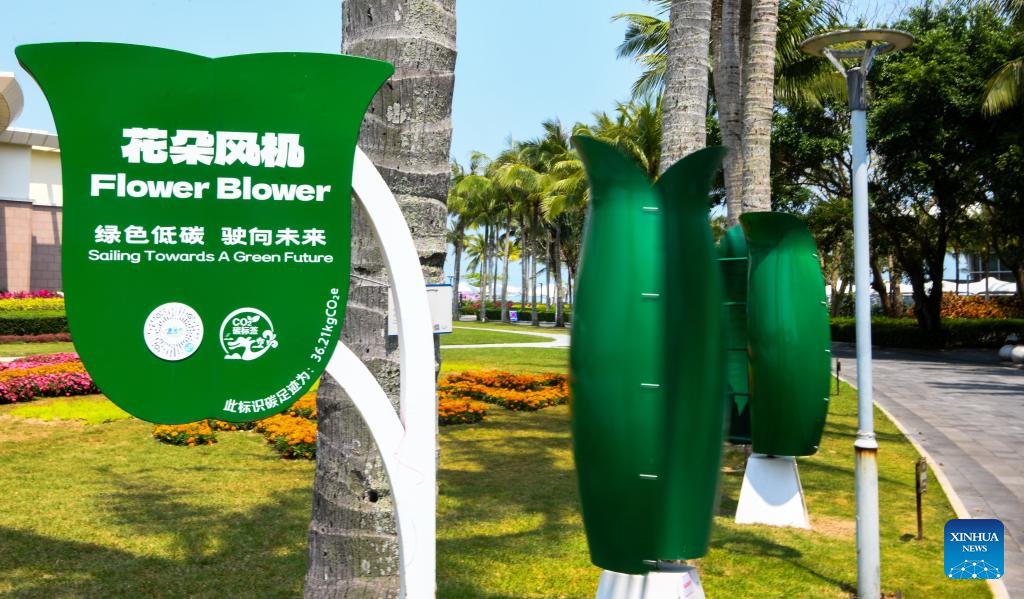 Flower-shaped wind turbines are seen at the Boao zero-carbon demonstration zone during the Boao Forum for Asia (BFA) Annual Conference 2025 in Boao, south China's Hainan Province, March 25, 2025. Since its formal inauguration in 2001, the BFA has served as a key platform for the advancement of green development across Asia, facilitating the exchange of insights to promote sustainable growth in the region and beyond.
