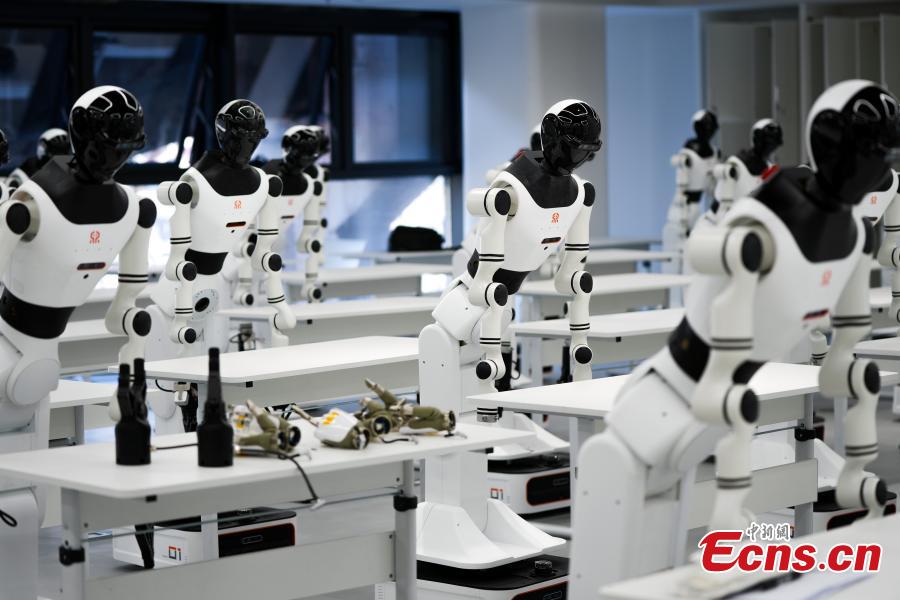 Humanoid robots are pictured at the humanoid robot innovation center at Shougang Park in Beijing, March 27, 2025. (China News Service/Zhang Xiangyi)