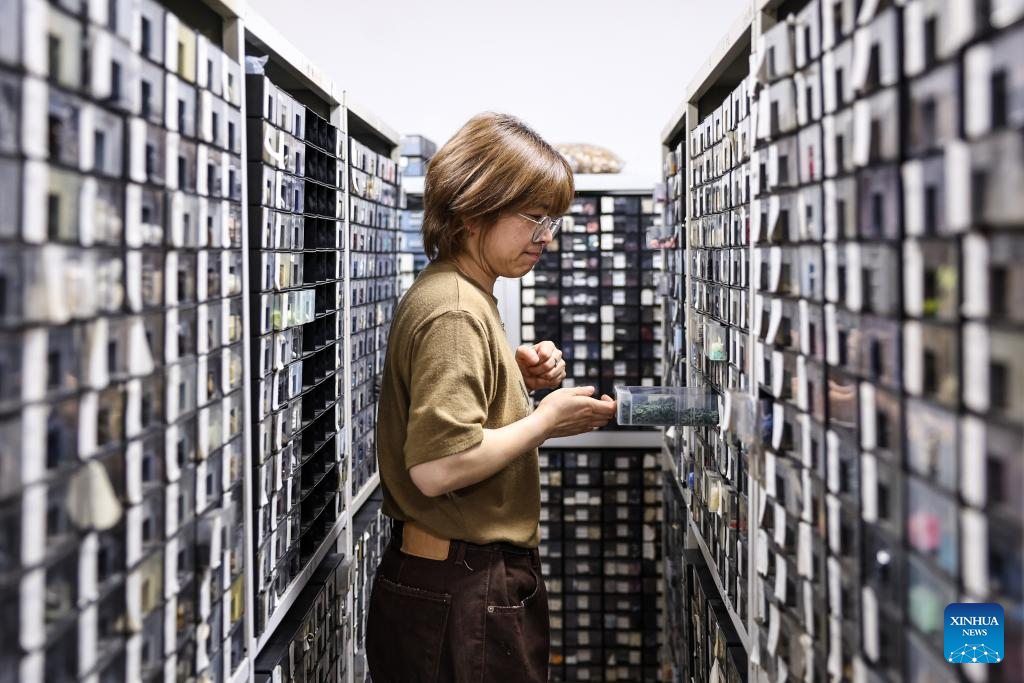 A staff member sorts out button samples at a button company in Qiaotou Town of Yongjia County, Wenzhou City, east China's Zhejiang Province, March 26, 2025.