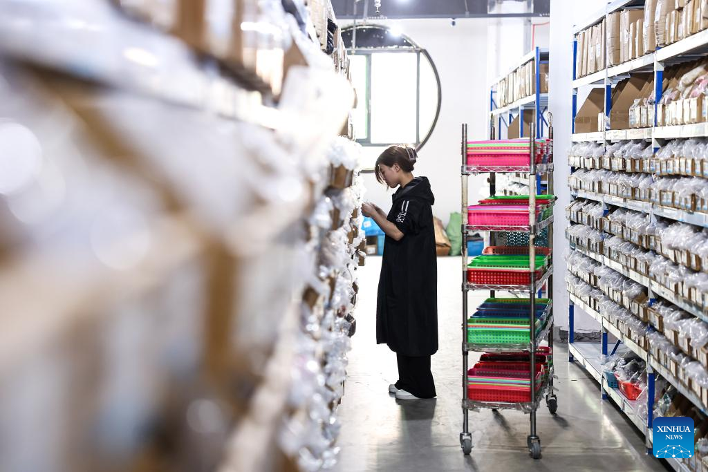 A staff member works at a warehouse of an e-commerce company in Qiaotou Town of Yongjia County, Wenzhou City, east China's Zhejiang Province, March 26, 2025.