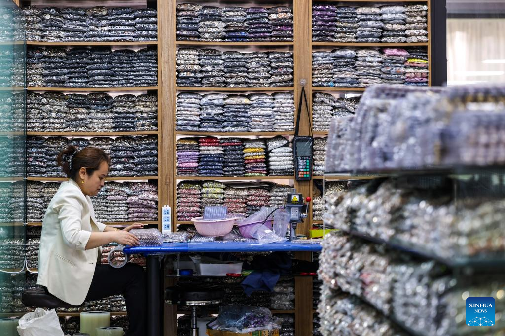 A staff member works at a workshop of a garment company in Qiaotou Town of Yongjia County, Wenzhou City, east China's Zhejiang Province, March 27, 2025.