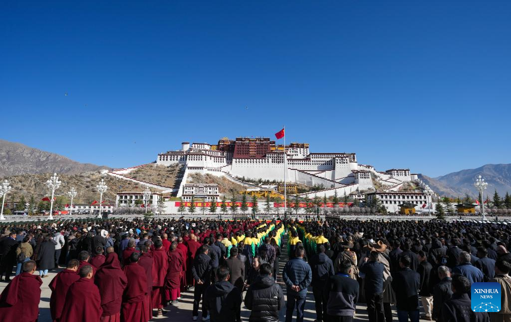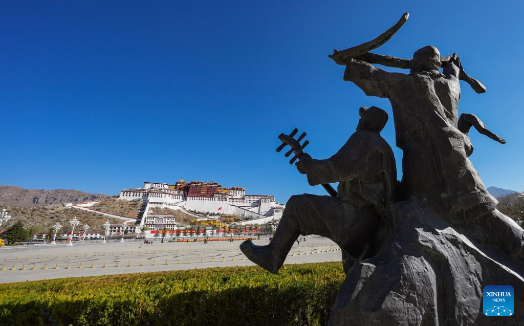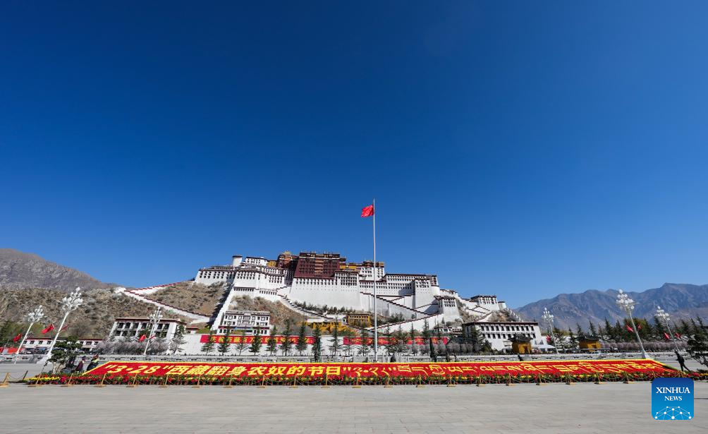 This photo taken on March 28, 2025 shows the square in front of the Potala Palace in Lhasa, capital of southwest China's Xizang Autonomous Region. Friday marks the 66th anniversary of the democratic reform that ended feudal serfdom in southwest China's Xizang Autonomous Region, with multiple grand celebrations and commemorative activities held across the region.