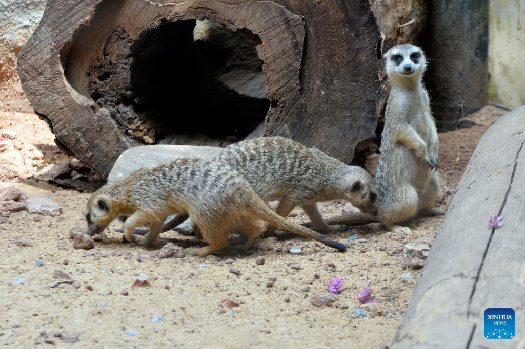 Meerkats are pictured at Dehiwala Zoological Gardens in Colombo, Sri Lanka, on March 28, 2025. Six pairs of meerkats brought to Dehiwala Zoo of Sri Lanka from the United Arab Emirates (UAE) have been put on public display at Dehiwala Zoological Gardens in Colombo on Friday. (Photo by Gayan Sameera/Xinhua)