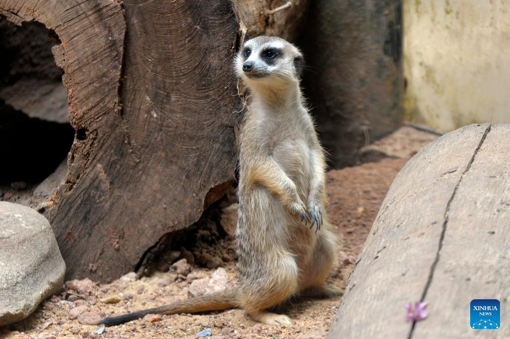 A meerkat is pictured at Dehiwala Zoological Gardens in Colombo, Sri Lanka, on March 28, 2025. Six pairs of meerkats brought to Dehiwala Zoo of Sri Lanka from the United Arab Emirates (UAE) have been put on public display at Dehiwala Zoological Gardens in Colombo on Friday. (Photo by Gayan Sameera/Xinhua)