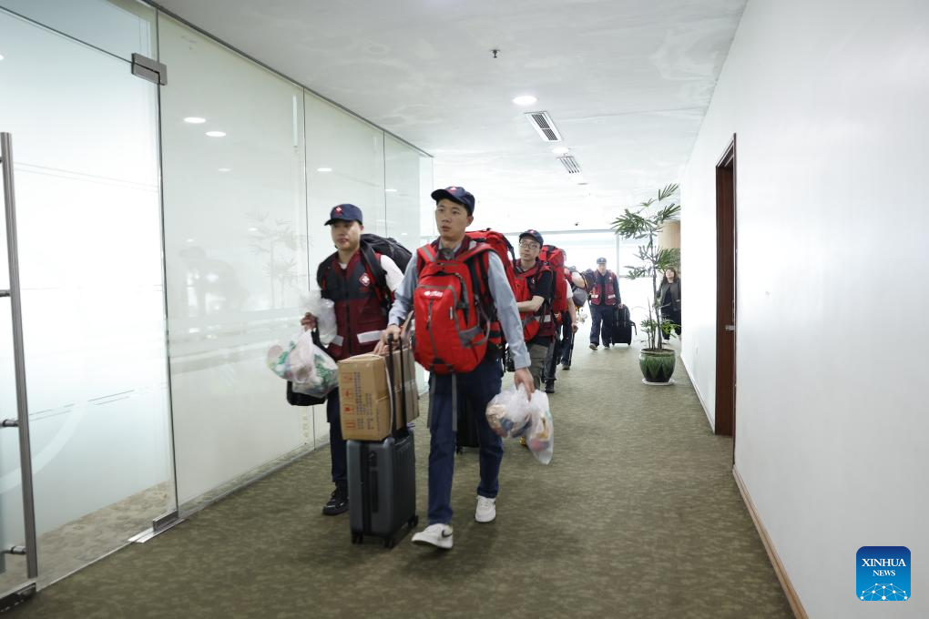 Chinese rescuers arrive at the Yangon International Airport in Yangon, Myanmar, March 29, 2025. A rescue team from southwest China's Yunnan Province arrived in Yangon, Myanmar, early Saturday after a massive earthquake jolted the Southeast Asian country on Friday. At least 144 people were killed and 732 injured in Myanmar after a 7.7-magnitude earthquake jolted the country on Friday. Myanmar's State Administration Council Chairman, Senior General Min Aung Hlaing, called for assistance from the international community, according to local reports. (Photo by Haymhan Aung/Xinhua)