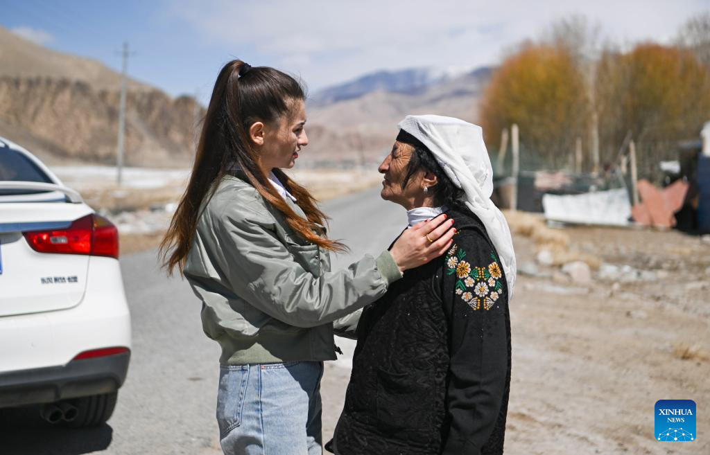 Amangul Wapik (L) talks with her families in Sarijilga Village of Taxkorgan Tajik Autonomous County, northwest China's Xinjiang Uygur Autonomous Region, March 21, 2025. (Xinhua/Hu Huhu)