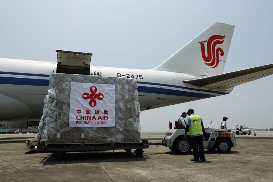 In the capital Nay Pyi Taw, a 37-member rescue and medical team from China's Yunnan Province arrived on Saturday evening with emergency supplies such as full-function life detectors, earthquake early warning systems, portable satellite phones and drones.