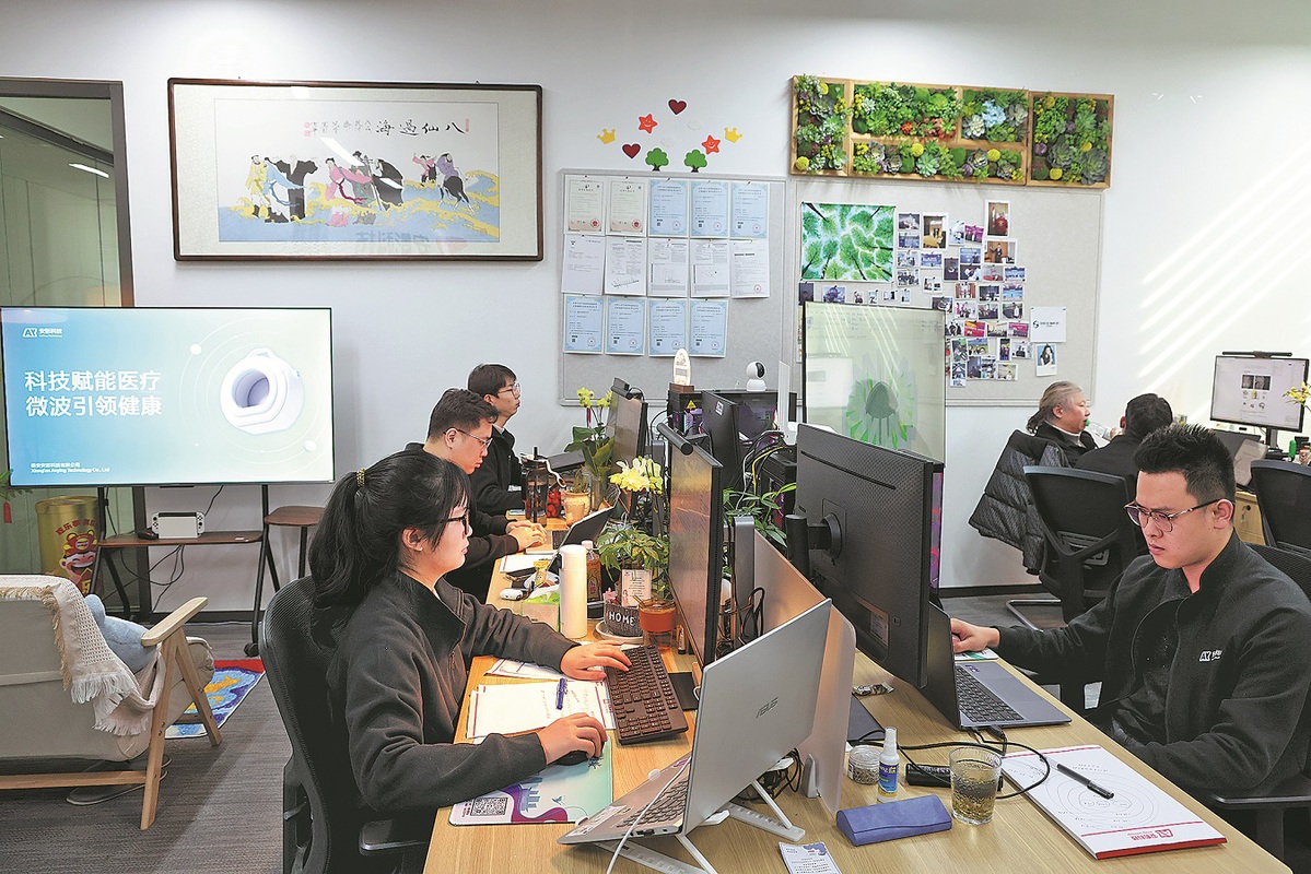 Employees work at Xiong'an Anying Technology Co in the Xiong'an Science and Technology Innovation Center. (Wang Jing/China Daily)