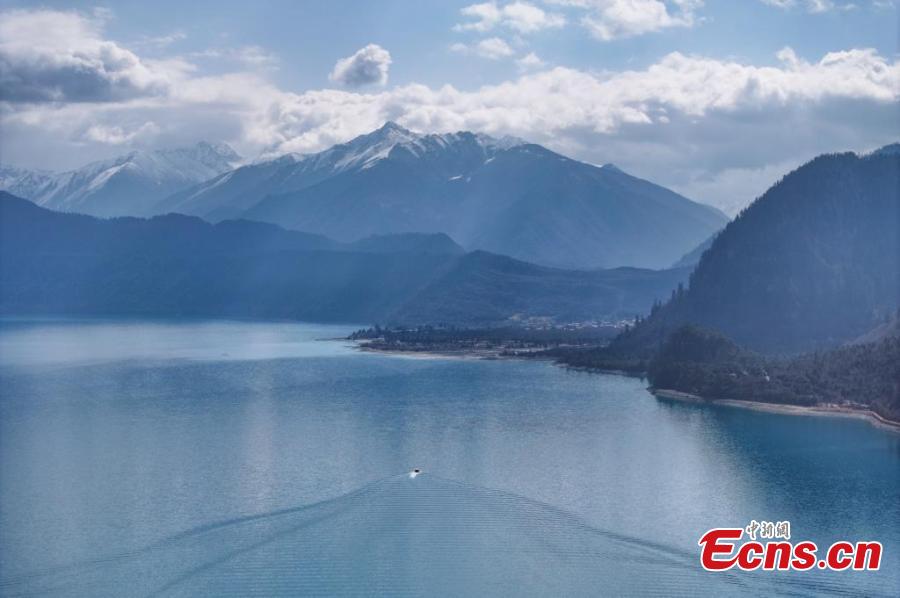 Spring scenery of Basom Tso Lake in Nyingchi, southwest China's Xizang Autonomous Region, March 30, 2025. (China News Service/Ma Mingyan)