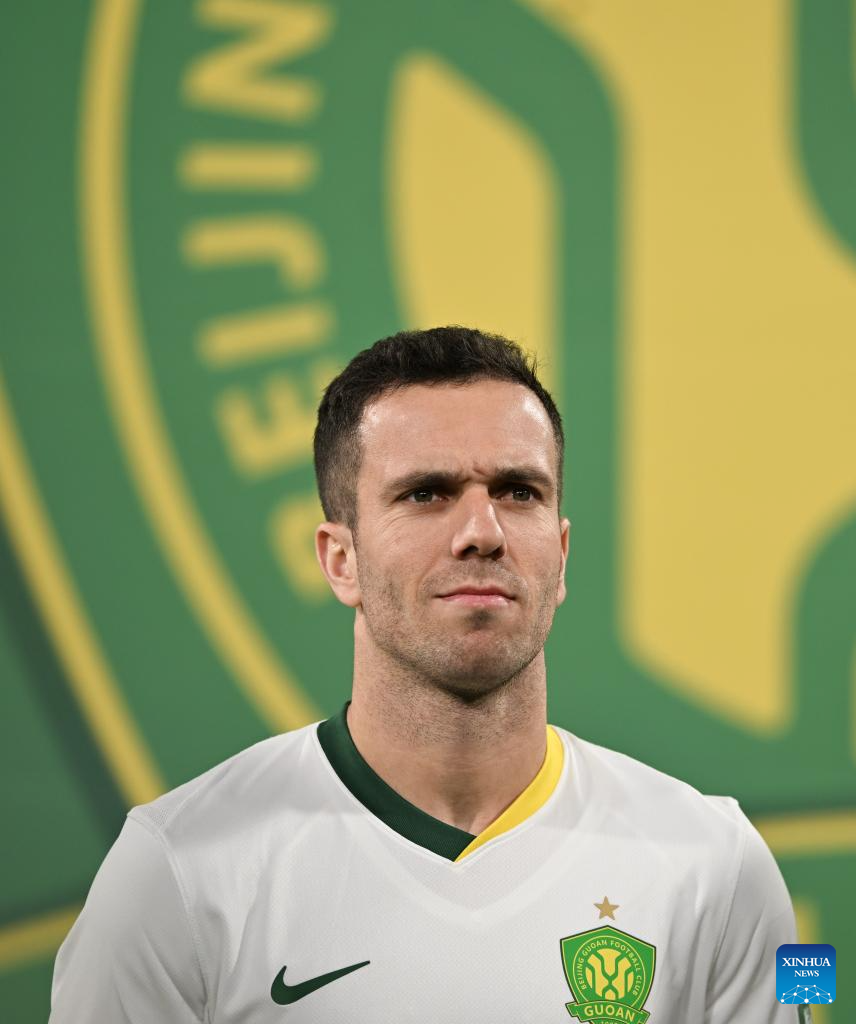 Sai Erjiniao of Beijing Guoan reacts before the 4th round match between Tianjin Jinmen Tiger and Beijing Guoan at the 2025 season Chinese Football Super League (CSL) in north China's Tianjin, April 2, 2025. (Xinhua/Sun Fanyue)