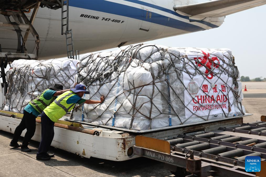 The first batch of emergency humanitarian aid supplies dispatched by the Chinese government for earthquake disaster relief arrived in Myanmar on March 31.