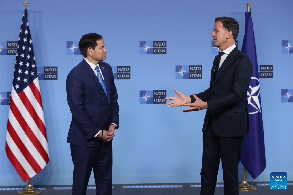 BRUSSELS, April 3 (Xinhua) -- U.S. Secretary of State Marco Rubio reaffirmed Washington's commitment to the North Atlantic Treaty Organization (NATO) during his first meeting with the alliance's foreign ministers, while emphasizing the need for more defense spending in Europe.