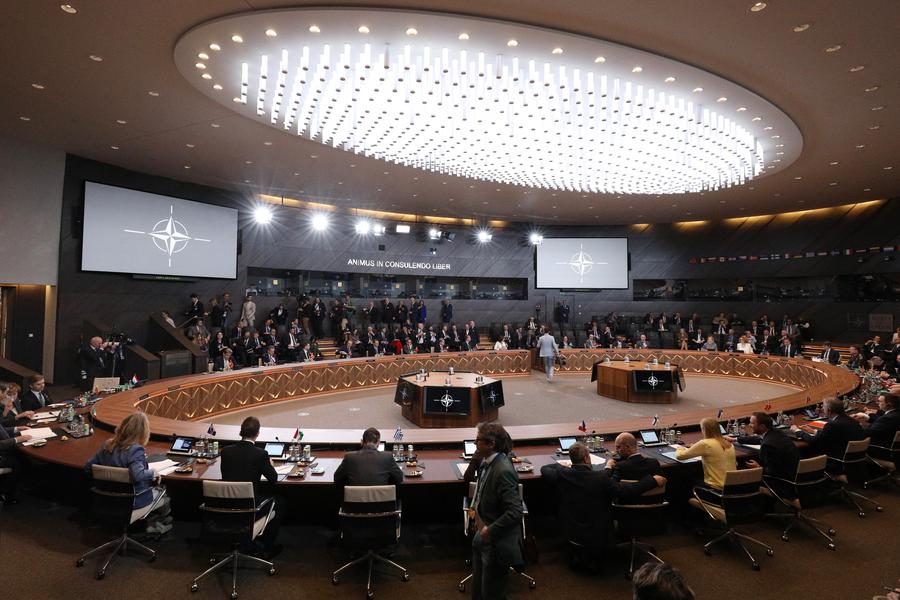 Photo taken on April 4, 2025 shows the NATO foreign ministers meeting at the NATO headquarters in Brussels, Belgium. (Xinhua/Zhao Dingzhe)