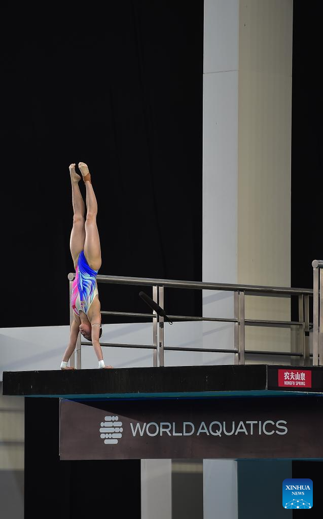 Chen Yuxi of China competes during the women 10m platform final at the World Aquatics Diving World Cup 2025 in Guadalajara, Jalisco, Mexico, on April 5, 2025. (Photo by Alejandro Acosta/Xinhua)