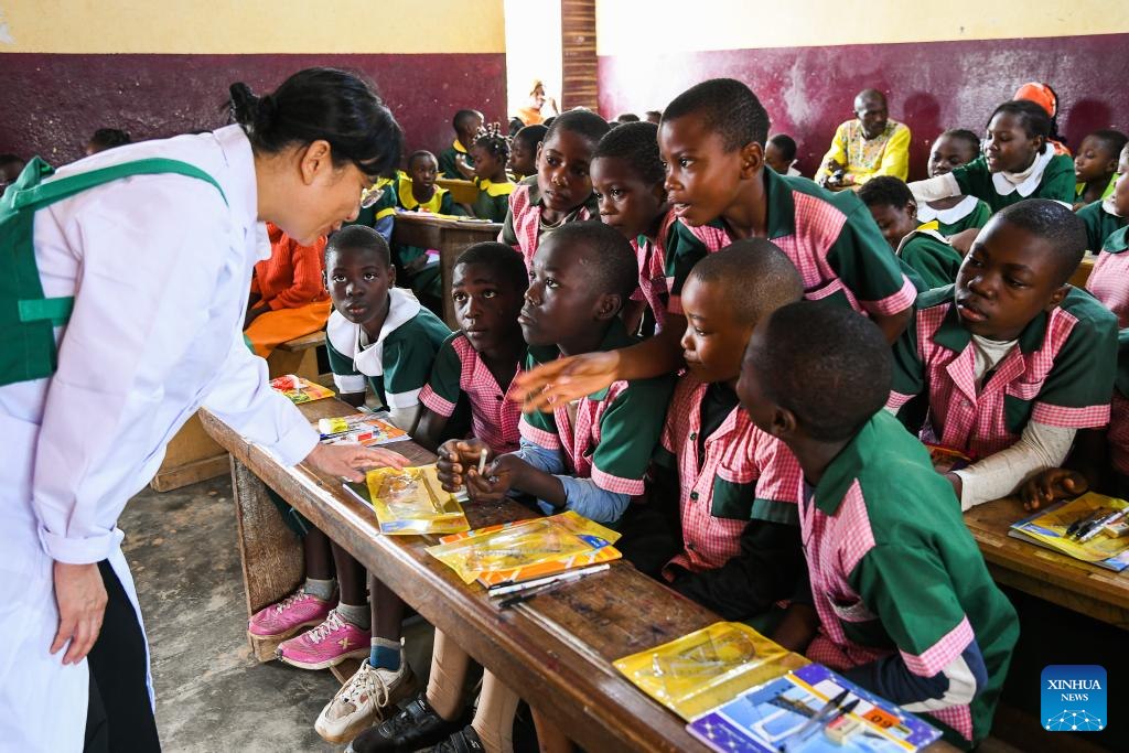 The activity involved 14 professionals from the Chinese medical team on an aid mission in Mbalmayo, an industrial town about 40 km from the national capital of Yaounde. The medical team also donated study materials to the school.