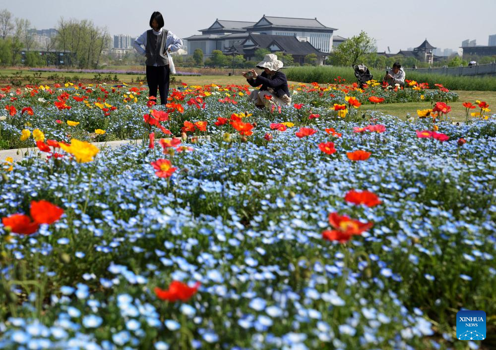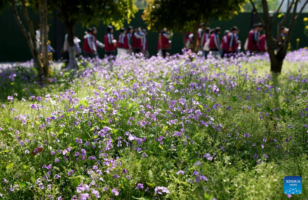 People enjoy flowers at the Zijingang campus of Zhejiang University in Hangzhou, capital of east China's Zhejiang Province, April 6, 2025. (Xinhua/Han Chuanhao)