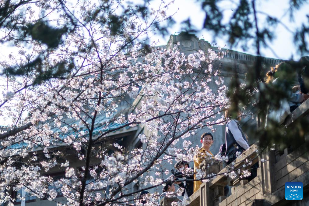 People enjoy cherry blossoms at Wuhan University in Wuhan, capital of central China's Hubei Province, March 22, 2025. (Xinhua/Wu Zhizun)