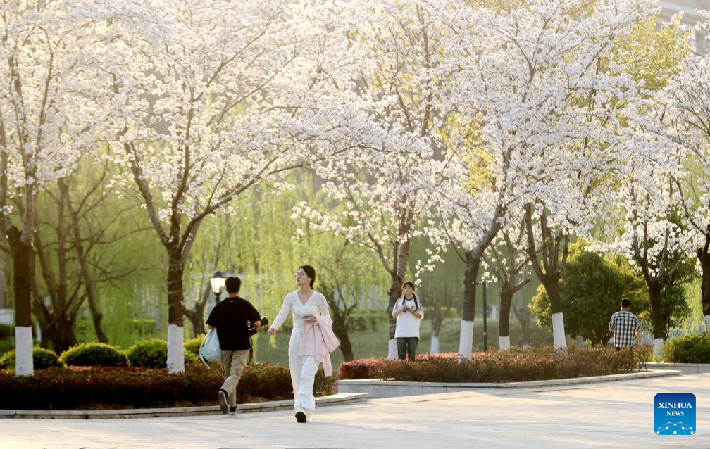 People walk at Beijing Forestry University in Beijing, capital of China, April 4, 2025. (Photo by Zhou Tinglu/Xinhua)