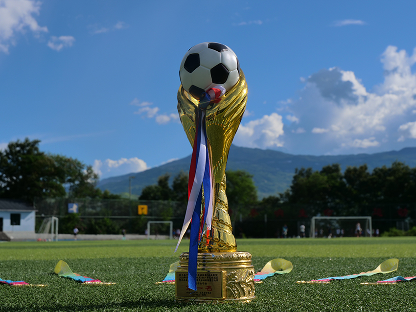 Photo shows a championship trophy earned by the No. 1 Middle School girls' soccer team in Honghe county, Honghe Hani and Yi Autonomous Prefecture, southwest China's Yunnan Province. (Photo courtesy of the Convergence Media Center of Honghe County)
