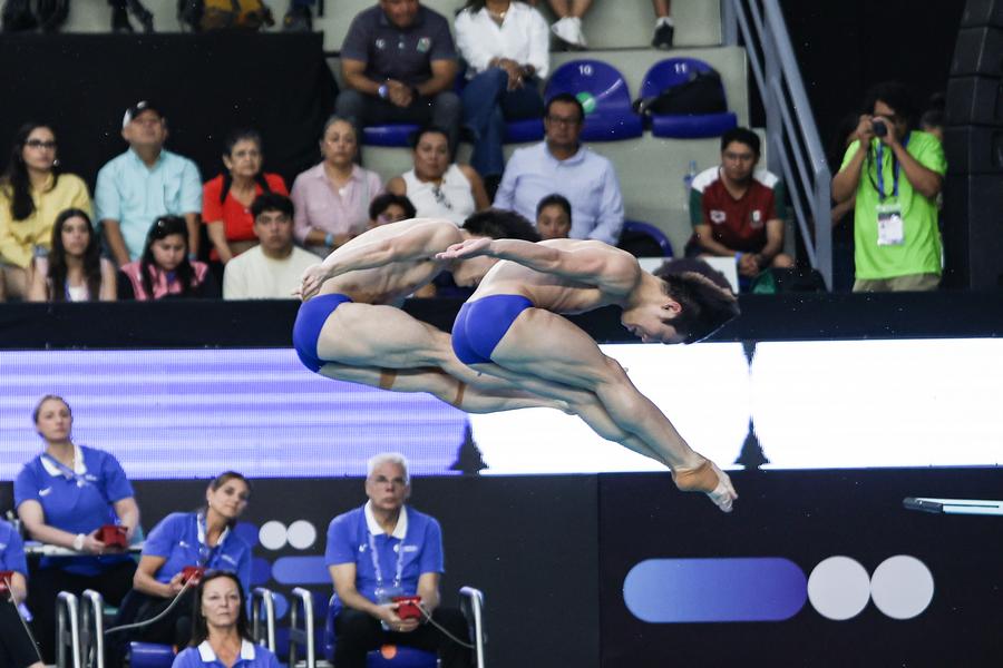 Juan Manuel Celaya Hernandez/Osmar Olvera Ibarra of Mexico compete during the men's Synchronized 3m springboard final on April 6, 2025. (Photo by Diana Marquez/Xinhua)