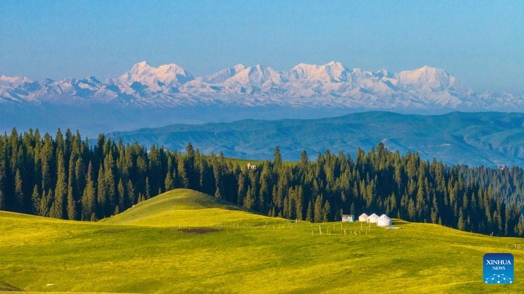 This photo taken on June 8, 2021 shows a view of Tekes County in Ili Kazak Autonomous Prefecture, northwest China's Xinjiang Uygur Autonomous Region.