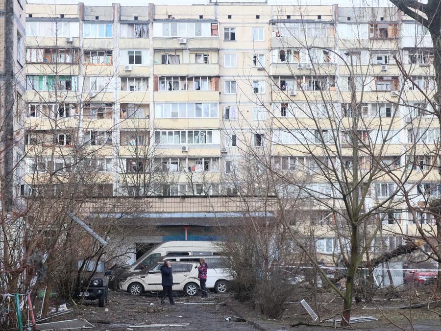 This photo taken on March 21, 2024 shows a building damaged in a missile attack in Kiev, Ukraine. (Photo by Roman Petushkov/Xinhua)