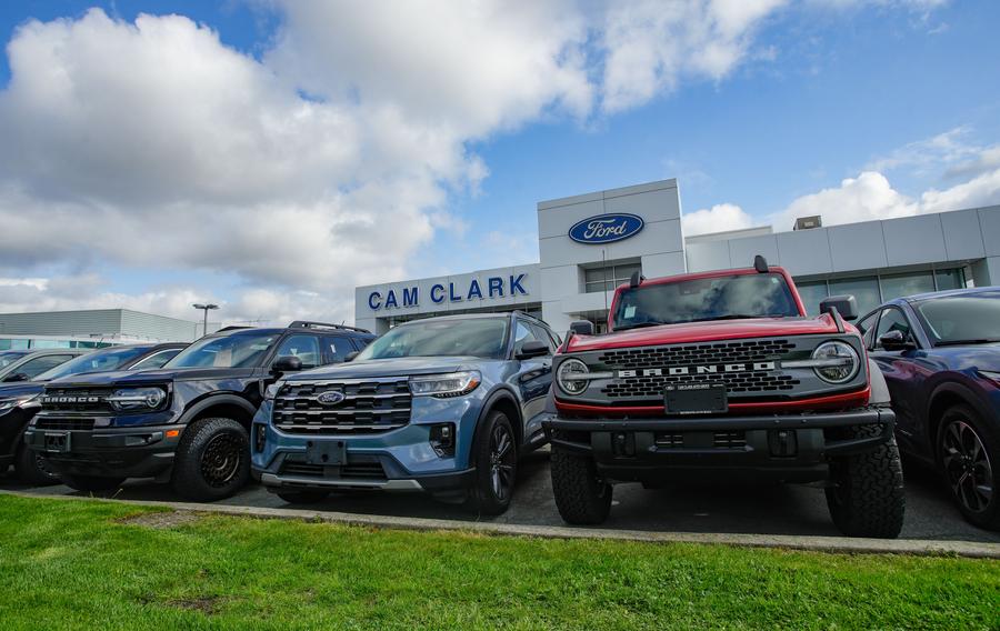 New vehicles are on display at a Ford dealership in Vancouver, British Columbia, Canada, on April 3, 2025. (Photo by Liang Sen/Xinhua)