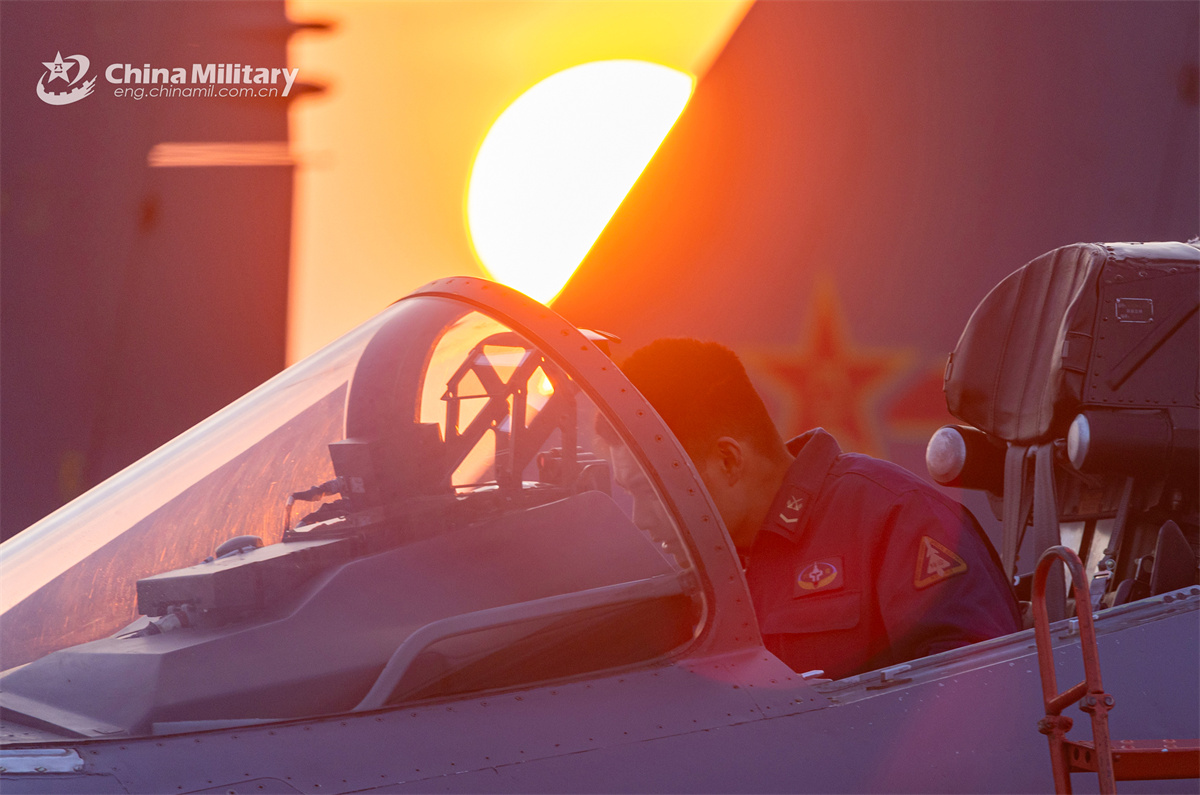 A maintenance technician assigned to an aviation brigade of the Chinese PLA Air Force inspects the cockpit of a fighter jet during a flight training exercise on March 26, 2025. (eng.chinamil.com.cn/Huang Guotai)