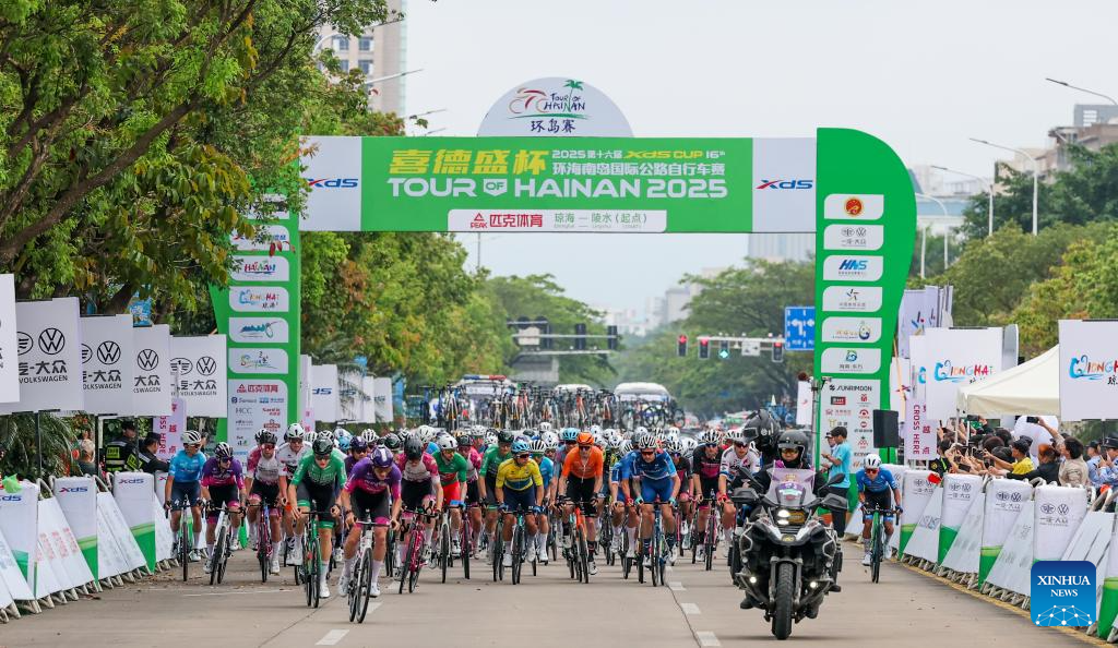 Cyclists set off during Stage 2 at the 16th Tour of Hainan cycling race from Qionghai to Lingshui, south China's Hainan Province, April 8, 2025. (Xinhua/Yang Guanyu)