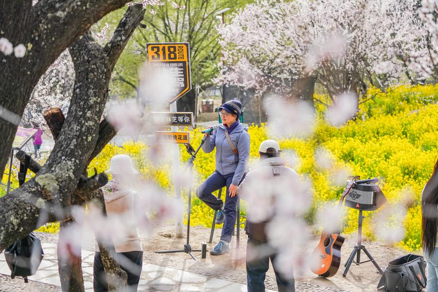LHASA, April 9 (Xinhua) -- In recent years, Nyingchi has managed to integrate flower viewing and tourism development, trying to transform the ecological scenery into economic value.