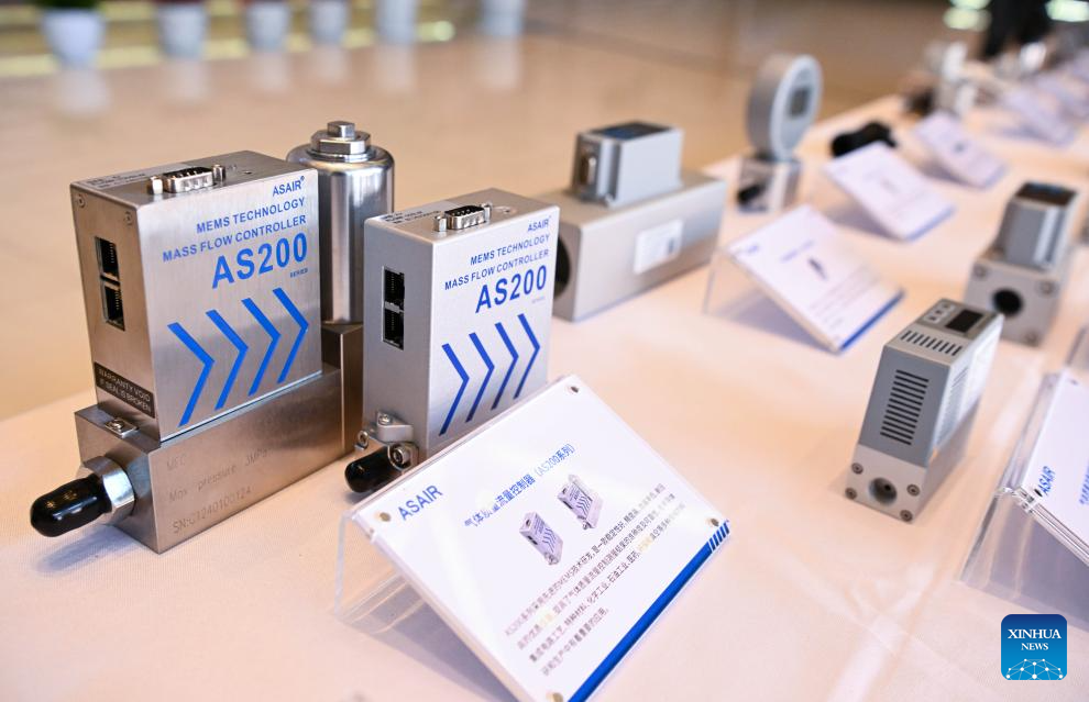 This photo shows mass flow controllers at Aosong Electronic Co., Ltd. in Guangzhou, south China's Guangdong Province, March 20, 2025. (Xinhua/Deng Hua)