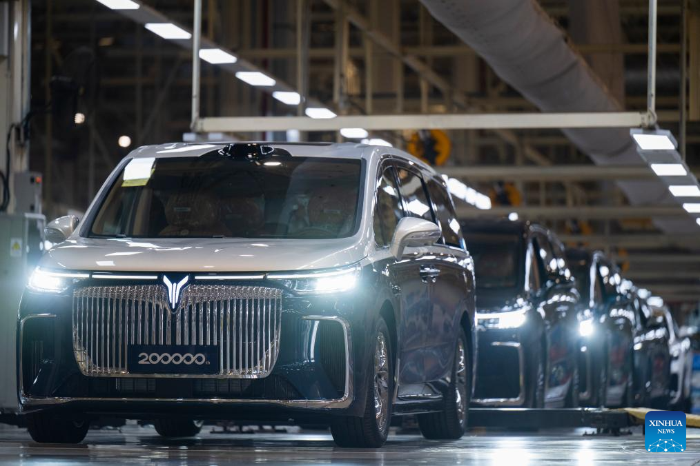 The 200,000th vehicle of Voyah, a Chinese NEV brand, rolls off the assembly line in Wuhan, central China's Hubei Province, April 9, 2025. (Xinhua/Wu Zhizun)