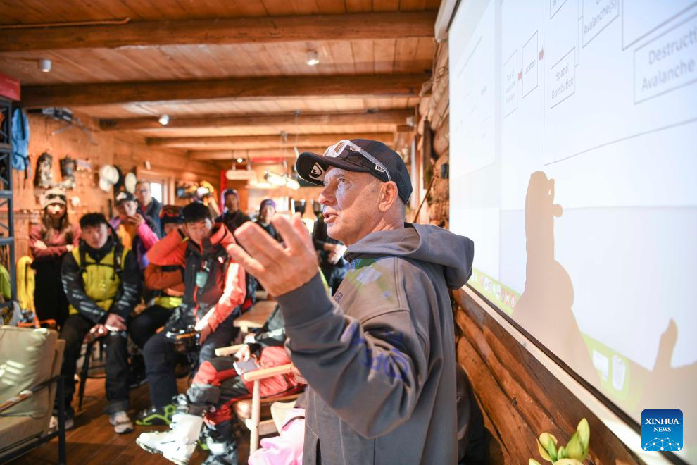 A ski expert from New Zealand teaches at Jikepulin International Ski Resort in Altay Prefecture, northwest China's Xinjiang Uygur Autonomous Region, Dec. 3, 2024. In recent years, with the abundant ice and snow resources of the Altay and Tianshan Mountains, Xinjiang are drawing increasing numbers of skiers and snowboarders, driven by China's expanding winter sports industry and ice-and-snow economy. A number of high-grade ski resorts have been constructed, attracting a large number of domestic and international tourists and gradually transforming ice and snow resources into economic benefits. (Xinhua/Hu Huhu)