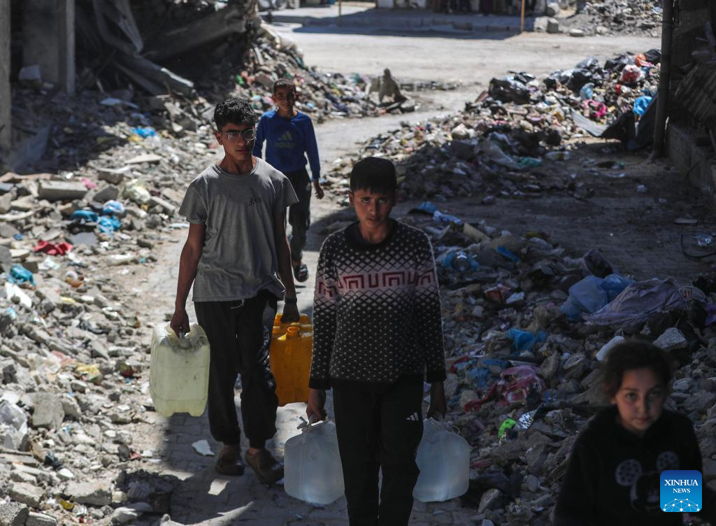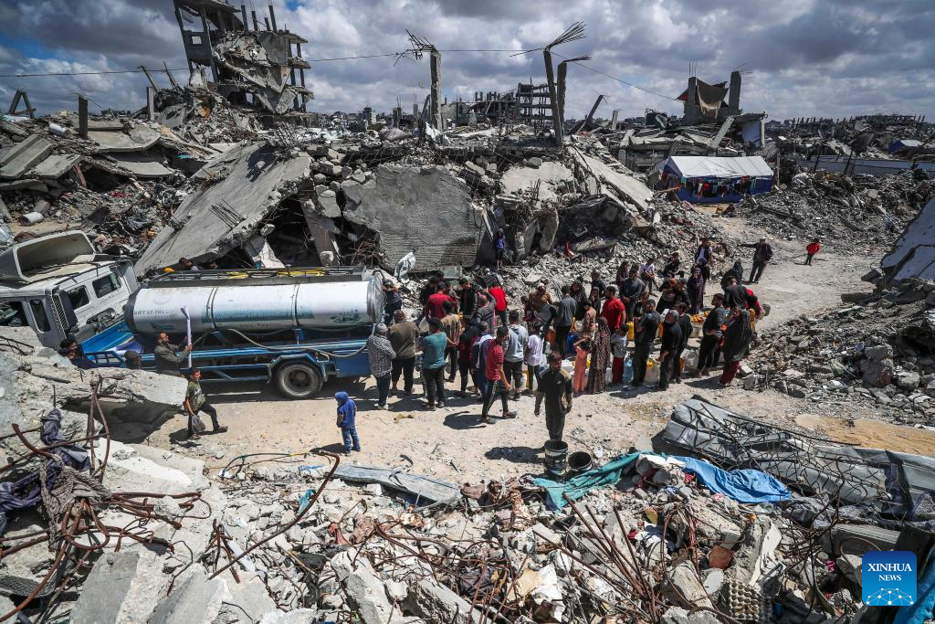 UNITED NATIONS, April 10 (Xinhua) -- Israeli attacks in Gaza are taking a horrifying toll on civilians already suffering dwindling food supplies and looting due to the aid blockade, UN humanitarians said on Thursday.