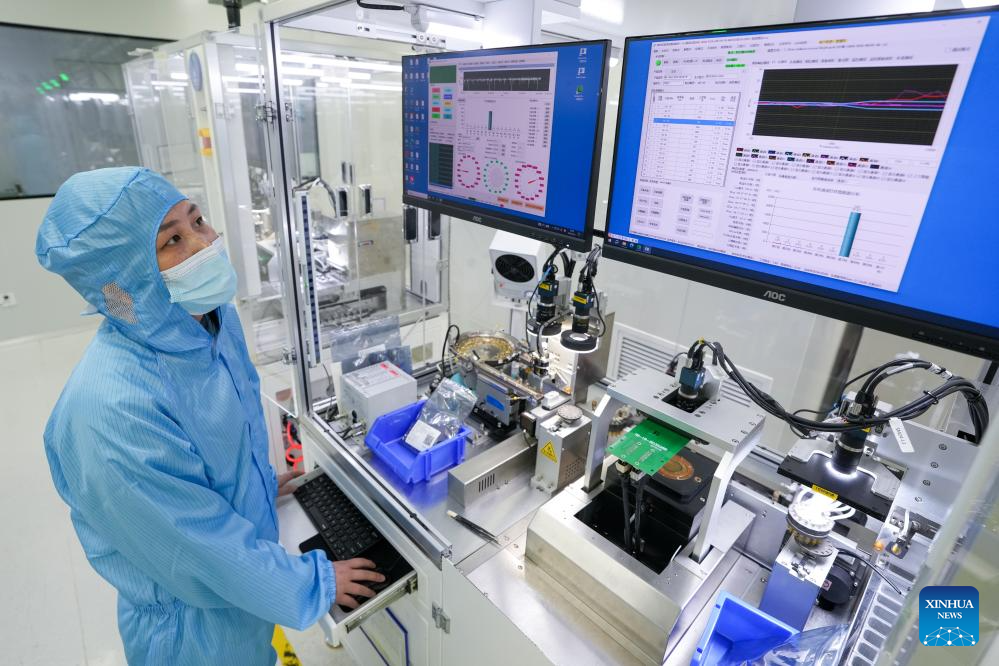 Staff members operate at a workshop at SinoVision SensTech in Wuxi, east China's Jiangsu Province, March 31, 2025. (Xinhua/Li Bo)