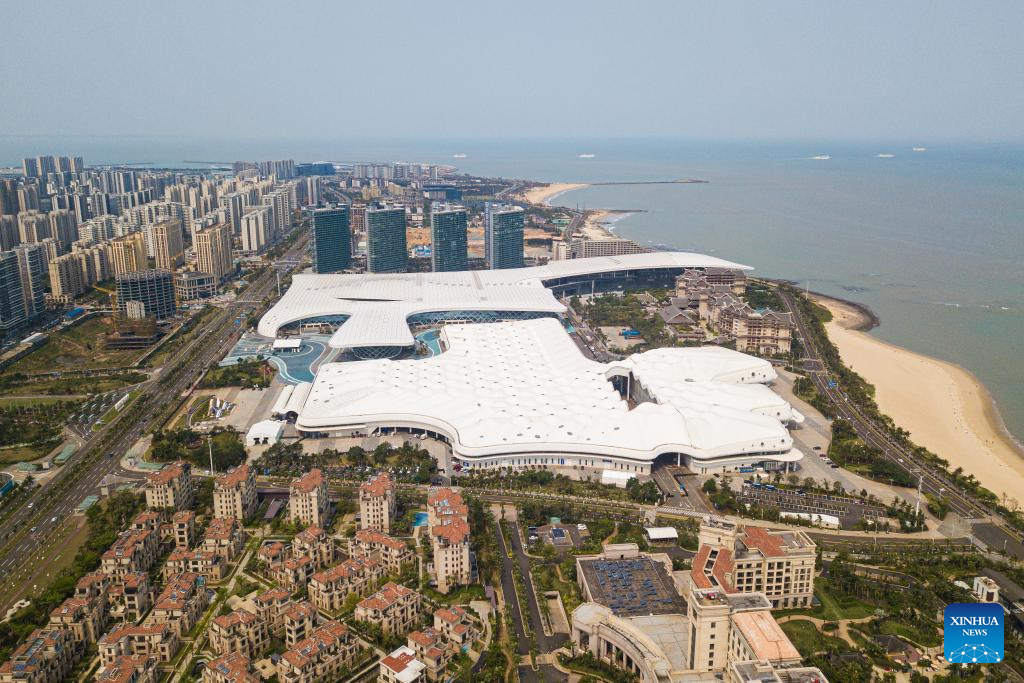 This photo taken on April 10, 2025 shows the Hainan International Convention and Exhibition Center, the main venue of the upcoming fifth China International Consumer Products Expo (CICPE) in Haikou, capital of south China's Hainan Province.