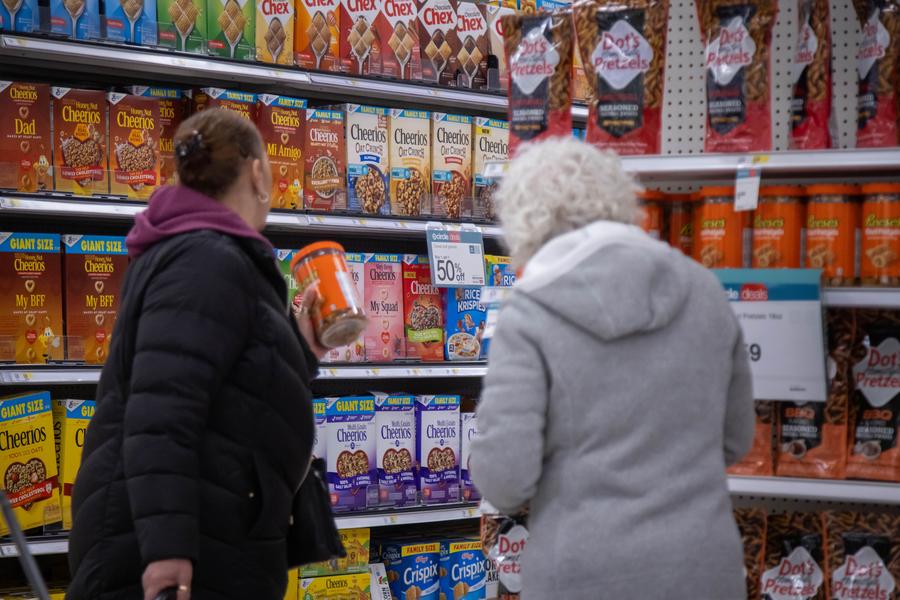 People shop for groceries at a store in New York, the United States, on March 28, 2025. (Photo by Michael Nagle/Xinhua)