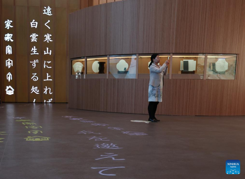 A visitor tours the China Pavilion at the Osaka Expo in Osaka, Japan, April 13, 2025. The China Pavilion officially opened on Sunday at the Osaka Expo, with an opening ceremony held in front of the pavilion's main building, which is designed to resemble a traditional Chinese scroll. Inspired by traditional Chinese calligraphy scrolls, the pavilion's architectural design embodies the theme of "Building a Community of Life for Man and Nature -- Future Society of Green Development." Osaka Expo 2025 will run from April 13 to October 13, 2025. The China Pavilion, one of the largest foreign self-built pavilions at the event, covers approximately 3,500 square meters. (Xinhua/Jia Haocheng)
