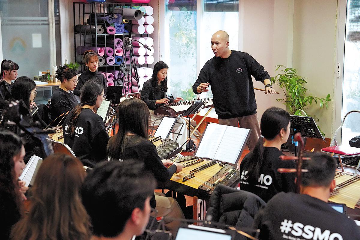 Dong Quang Vinh, a Vietnamese musician, leads a rehearsal of the Suc Song Moi (New Vitality) Bamboo Ensemble in Hanoi, Vietnam, in March. Vinh studied music in China from 2004 to 2013, during which time he married Mo Shuangshuang, a Chinese pianist. The couple founded the ensemble in Hanoi in 2013. (Hu Jiali/Xinhua)