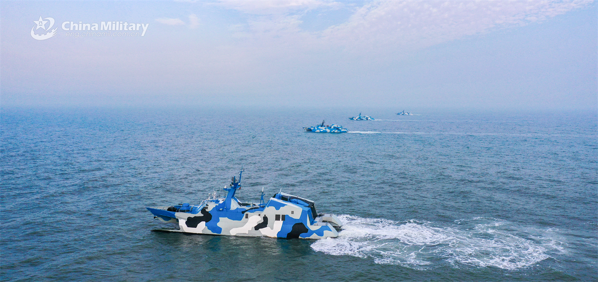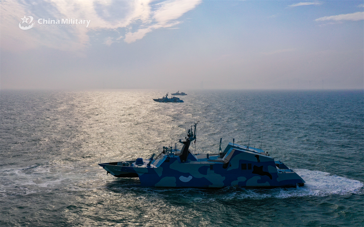 A group of fast attack missile boats attached to the Chinese PLA Navy sail at sea during a maritime training exercise on April 5, 2025. (eng.chinamil.com.cn/Wang Heqiu)