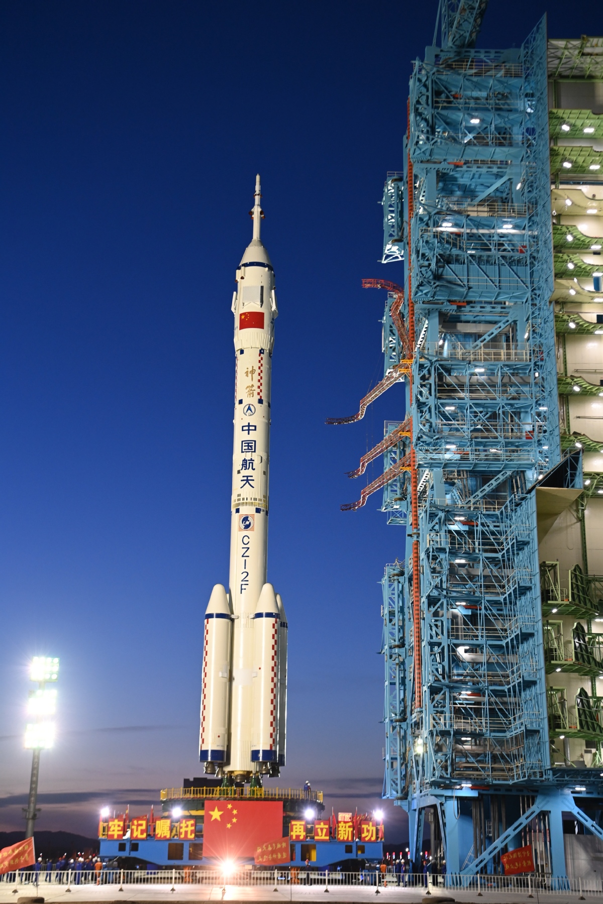 The Shenzhou XX spacecraft, crew, and carrier, a Long March 2F rocket, were moved to the service tower on Wednesday night at the Jiuquan Satellite Launch Center in northwestern China's Gobi Desert, the agency said in a brief news release, adding that launch equipment at the spaceport "are in good condition".